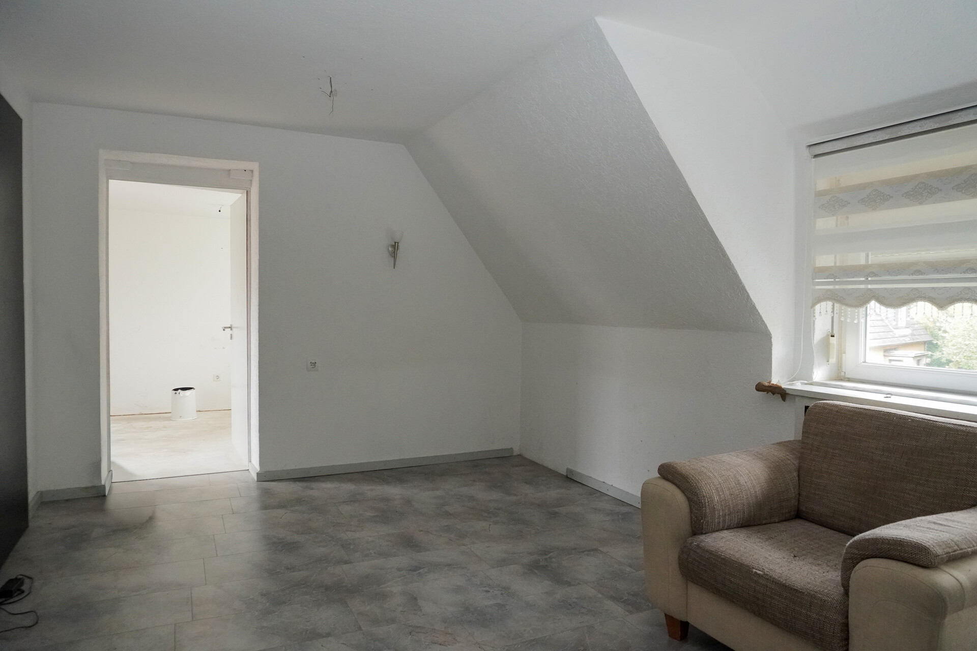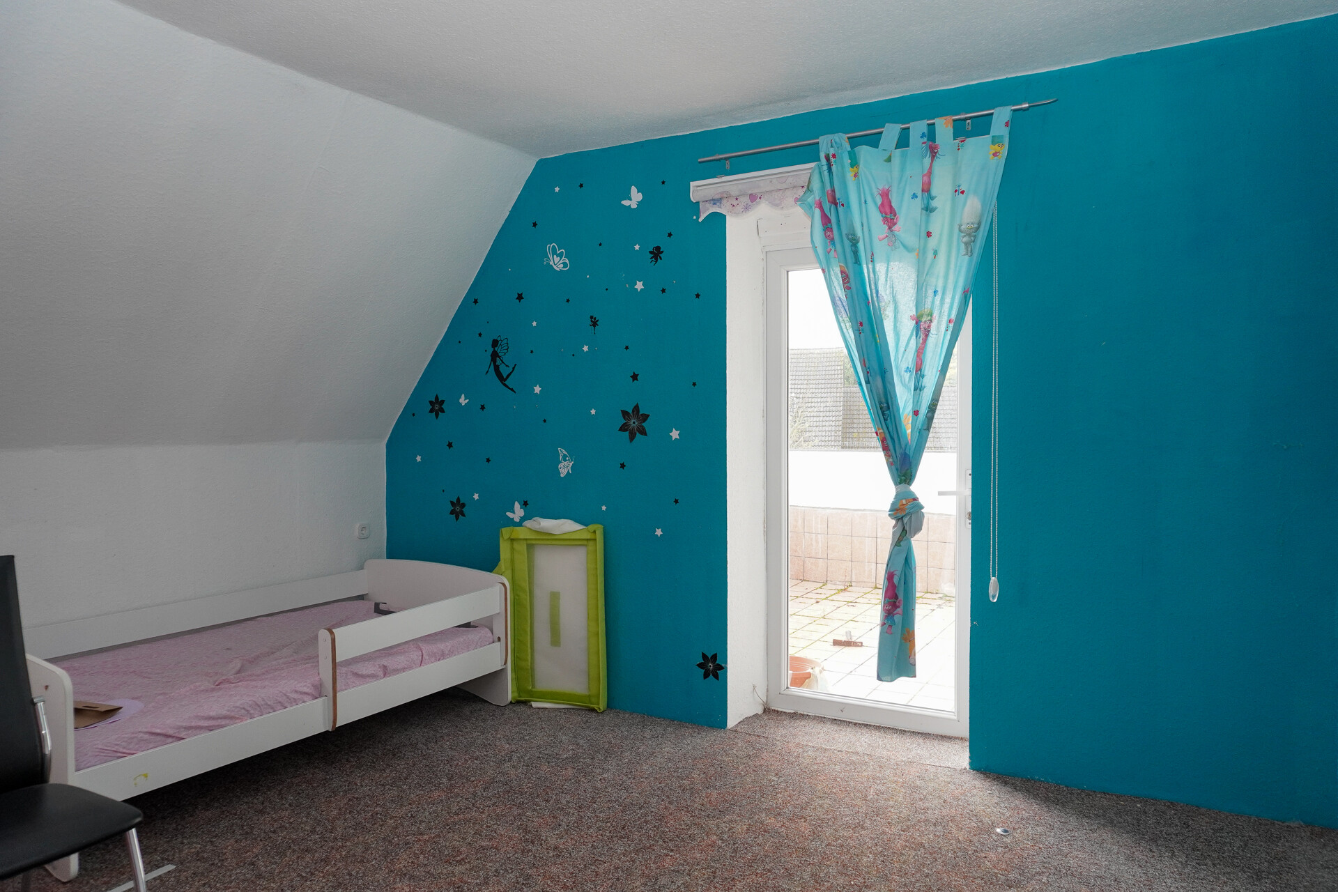 Über die neue Granittreppe (2023) gelangen Sie ins Obergeschoss. Hier stehen Ihnen 85 m² zur Verfügung. Die Wohnung überzeugt durch vier Zimmer, Küche und Bad und mit herrlichem Blick ins Grüne. Alle Fenster und Türen stammen ebenfalls aus 2023. Besonders hervorzuheben ist das Kinderzimmer mit Zugang zur großzügigen Terrasse. Ein idealer Rückzugsort zum Entspannen. Der Dachboden ist teilweise ausgebaut, ein zusätzliches Zimmer bereits fertiggestellt. Weitere Ausbaureserven bieten kreativen Gestaltungsspielraum.