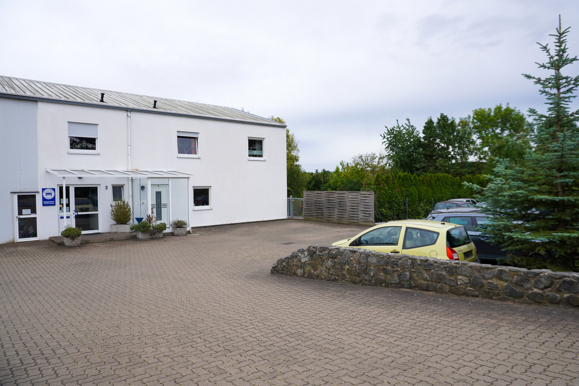Für Kunden und Geschäftspartner ist der Standort leicht auffindbar, während die großzügigen Außenflächen eine reibungslose Anfahrt und ausreichende Parkmöglichkeiten gewährleisten. Gleichzeitig liegt das Zweifamilienhaus angenehm zurückgesetzt und bietet so ein ruhiges, grünes Wohnumfeld, eine seltene Kombination aus Arbeit und Wohnen an einem Ort.
