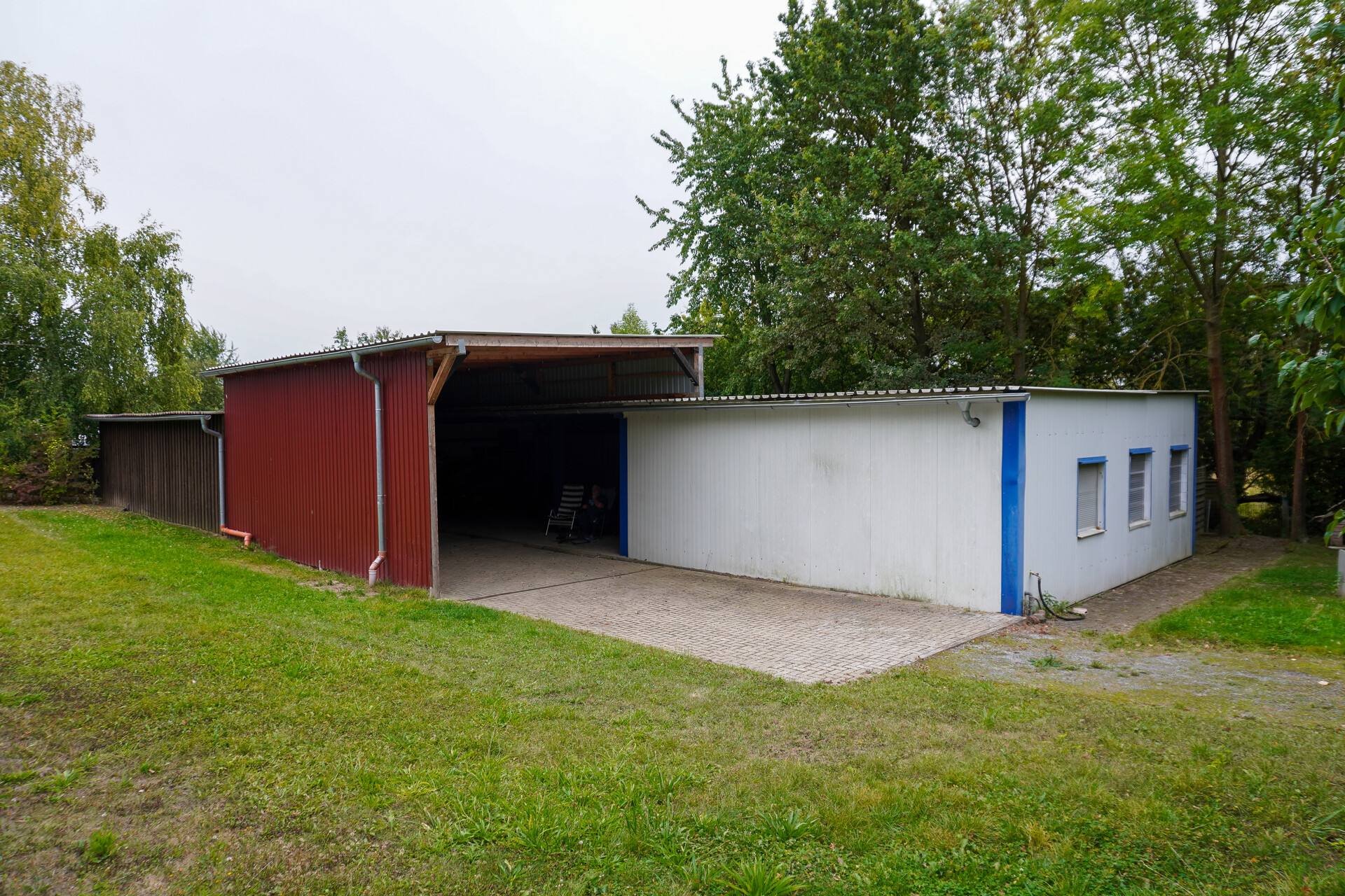 Ergänzt wird das Angebot durch eine zusätzliche Halle, ideal für Lagerung, Hobby oder gewerbliche Nutzung. Eine geschlossene Garage bietet weiteren geschützten Stellraum für Fahrzeuge oder Geräte.