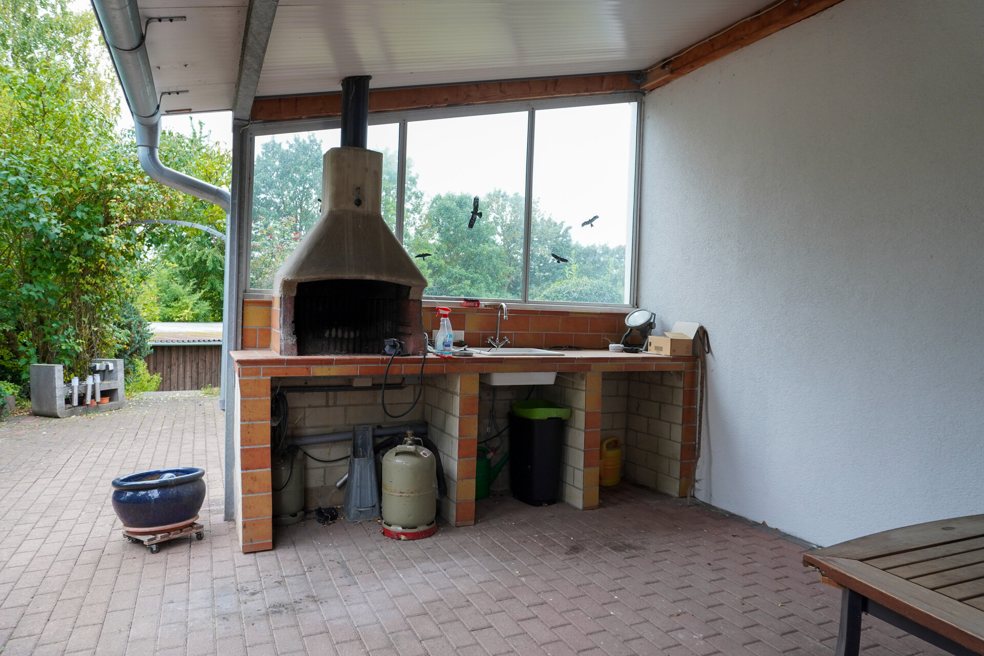 Das Grundstück selbst bietet eine Vielzahl an Extras: Ein separater Zugang mit eigenem Tor schafft Flexibilität, während ein Brunnen und ein 4.000-Liter-Regenwasserauffangbehälter nachhaltige Wassernutzung ermöglichen. Eine überdachte Terrasse mit integrierter Grillecke schafft Raum für gesellige Stunden, während eine weitere Terrasse im Erdgeschoss direkten Zugang zum Garten bietet.