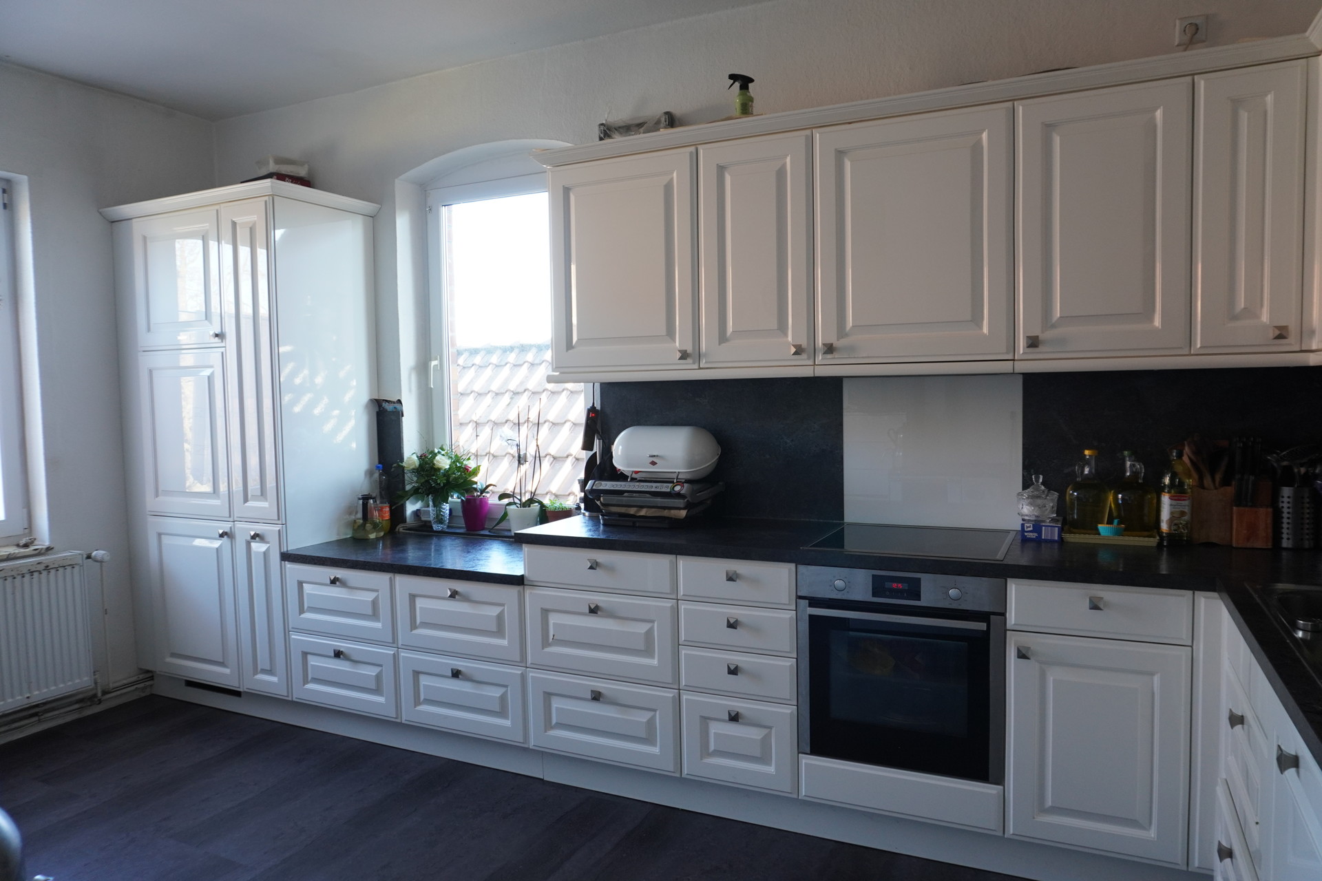 Die Küche in der oberen Wohnung wurde 2017 für 14.000 € angeschafft und ist mit modernen Geräten ausgestattet. Ein leistungsstarker Ofen sorgt für zusätzlichen Komfort. Beide Bäder wurden 2022 komplett saniert und modernisiert.