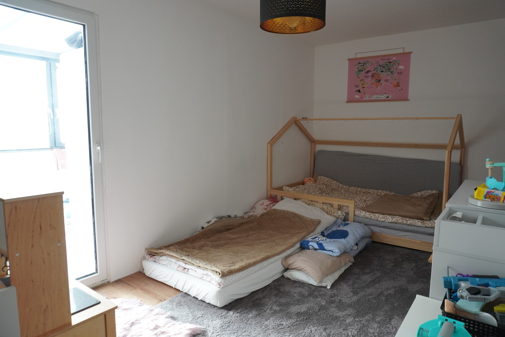Das Obergeschoss bietet zwei geräumige Schlafzimmer, die durch ihre Helligkeit und Vielseitigkeit bestechen. Die Zimmer sind ideal geeignet für die Nutzung als Schlaf-, Kinder- oder Arbeitszimmer. Beide Räume sind so gestaltet, dass sie individuell eingerichtet werden können und eine behagliche Atmosphäre schaffen.