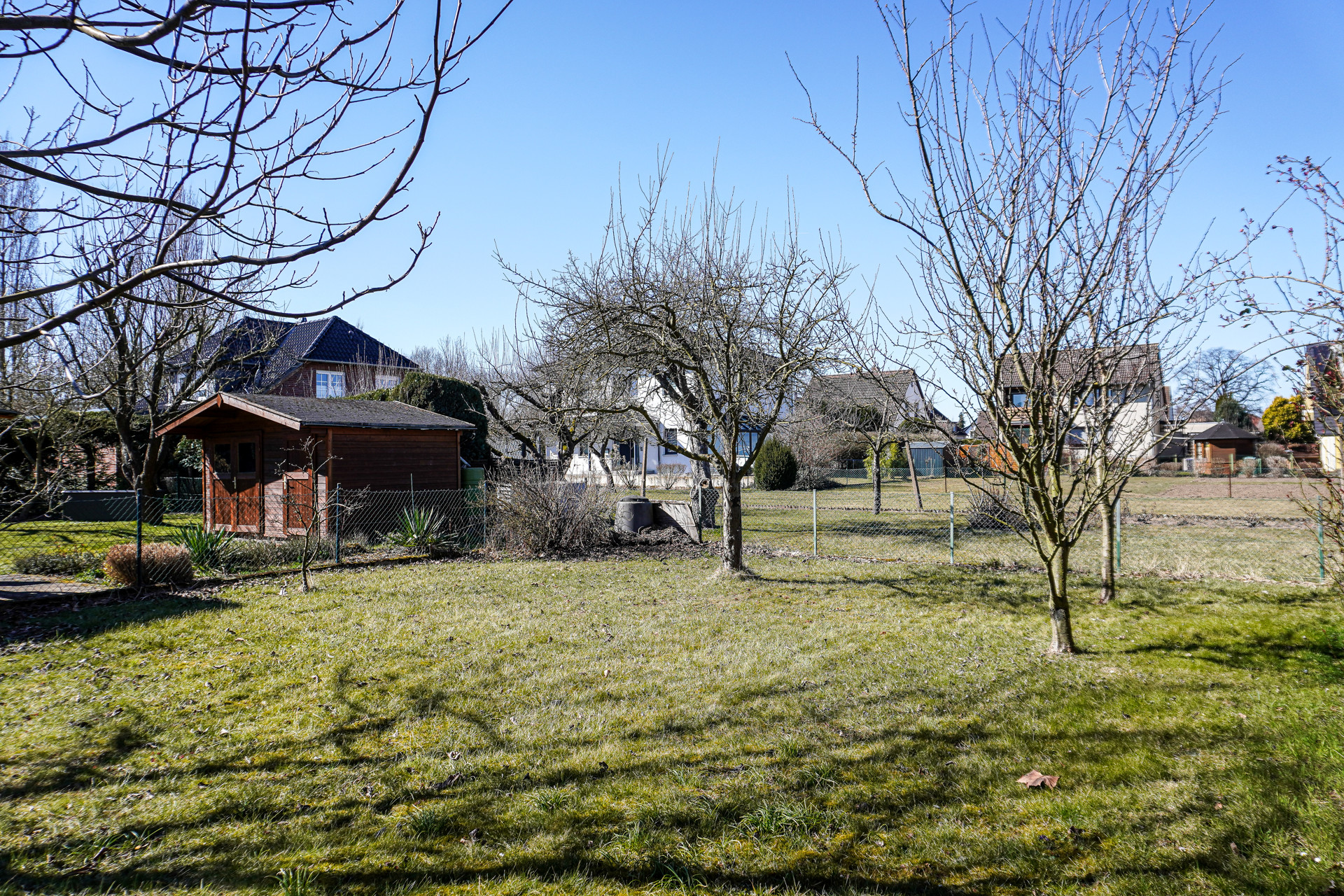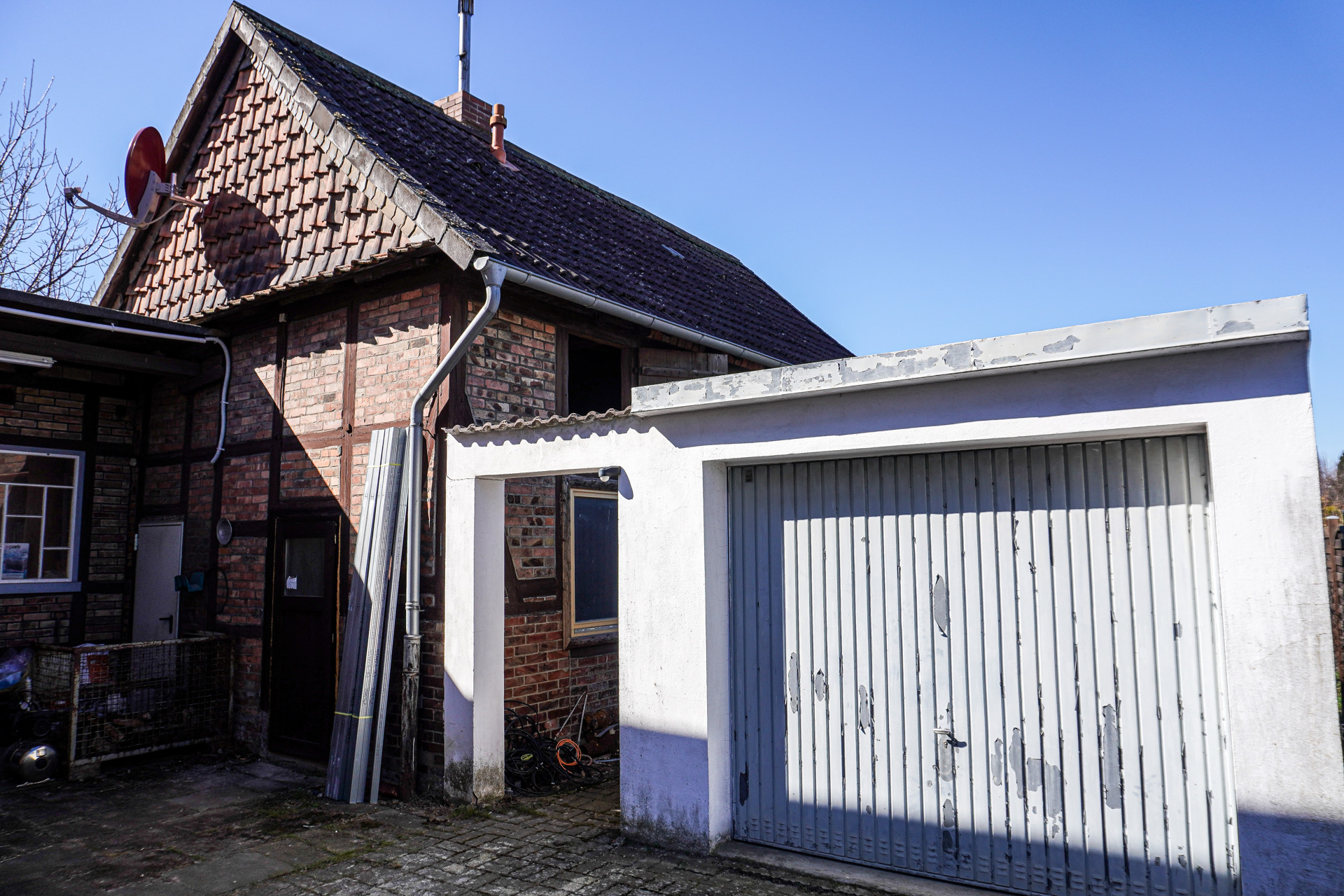 Außenbereiche: Garage, gepflegter Garten mit Obstbäumen und Outdoor-Fläche