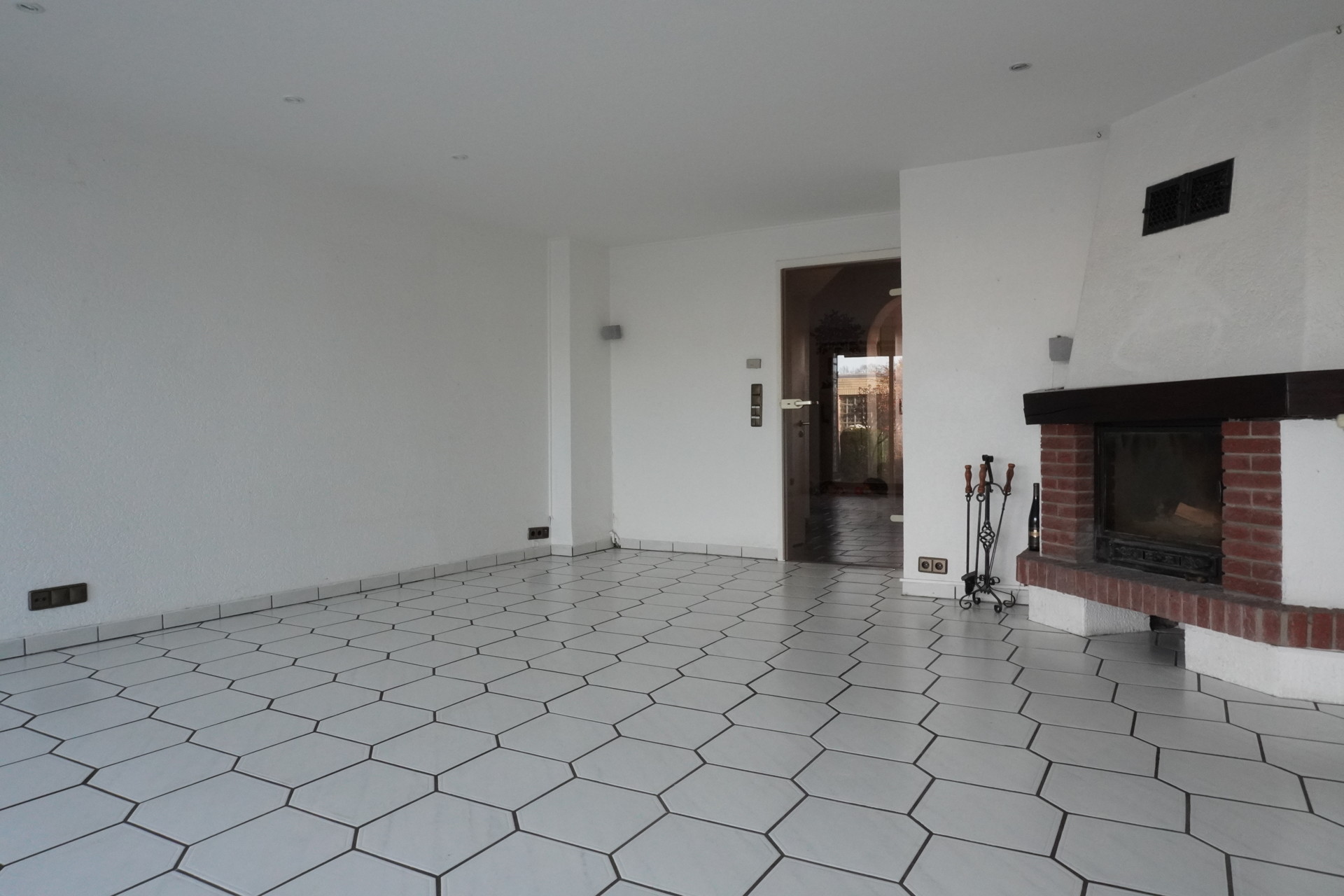Der Mittelpunkt des Hauses: Im Wohnzimmer, dem Herzstück des Hauses, erwartet Sie ein wunderschöner Kamin, der an kühlen Tagen für wohlige Wärme sorgt und den Raum in eine behagliche Oase verwandelt. Große Fensterflächen durchfluten den Raum mit Tageslicht und bieten einen herrlichen Ausblick auf die überdachte Terrasse und den Garten.