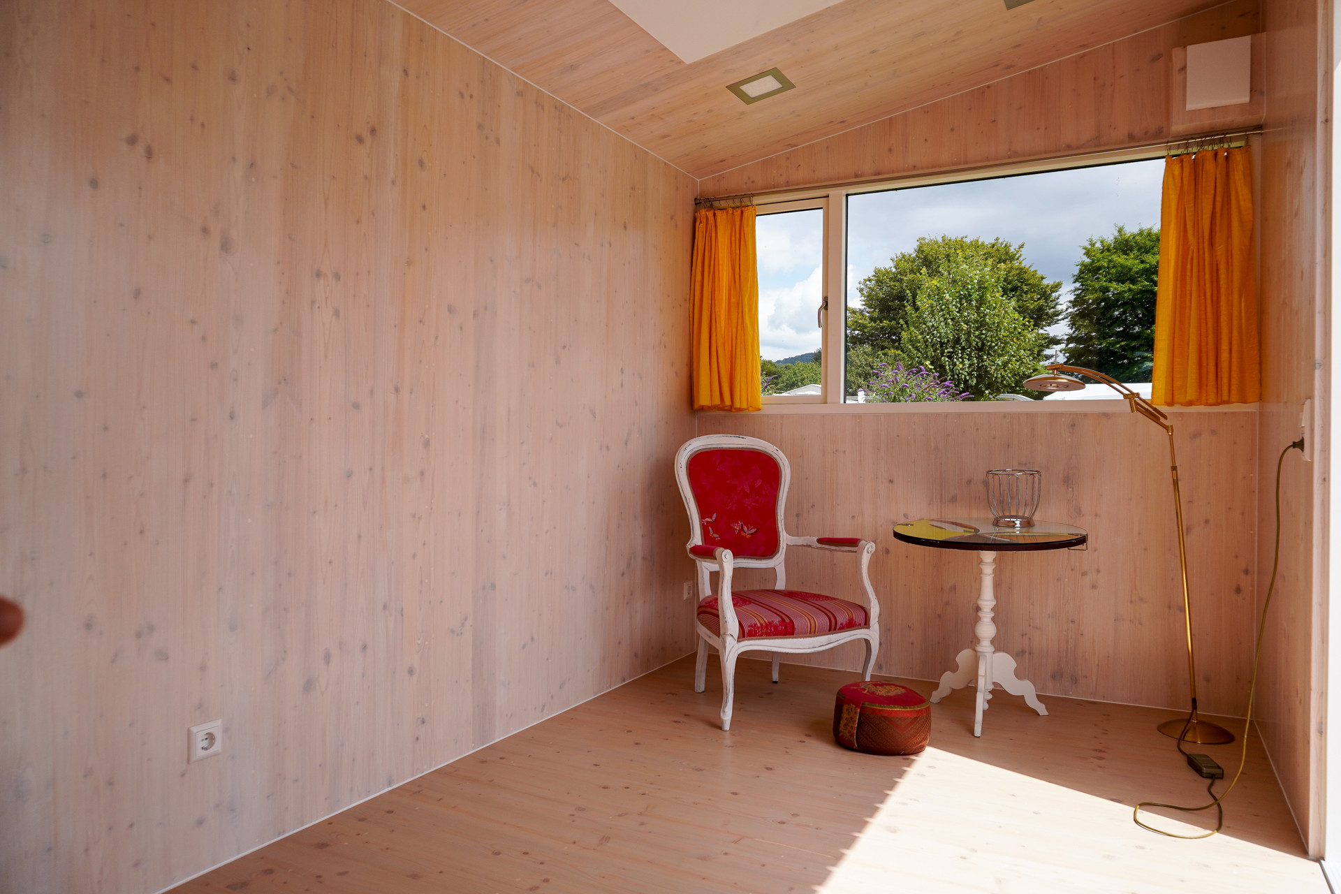 Hochwertiger Holzboden, Wände und Decke ebenfalls in Naturholzoptik