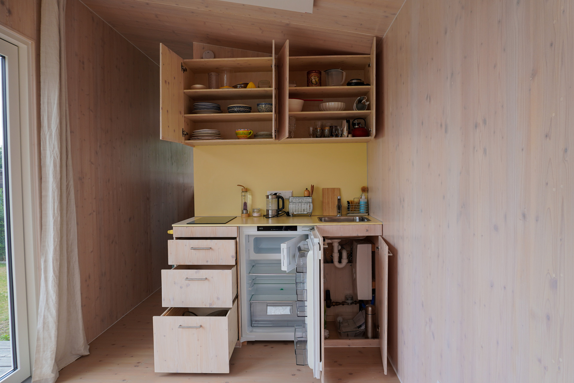 In Kombination mit modernen technischen Komponenten wie einer dezentralen Lüftungsanlage mit Wärmerückgewinnung, Infrarotheizpaneelen und einem energiesparenden Warmwasser-Durchlauferhitzer bietet das Tinyhaus alles, was man für ein autarkes und zukunftsorientiertes Leben braucht. Ein Objekt, das nicht nur durch seine Mobilität beeindruckt, sondern vor allem durch seine klare Vision: weniger Ballast, mehr Leben.