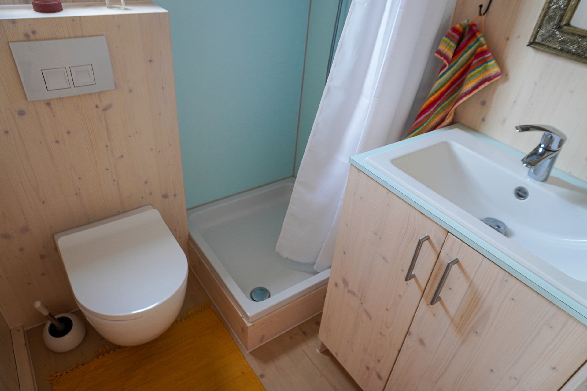 Bad mit Dusche, WC und Waschbecken (moderne Sanitäranlagen)