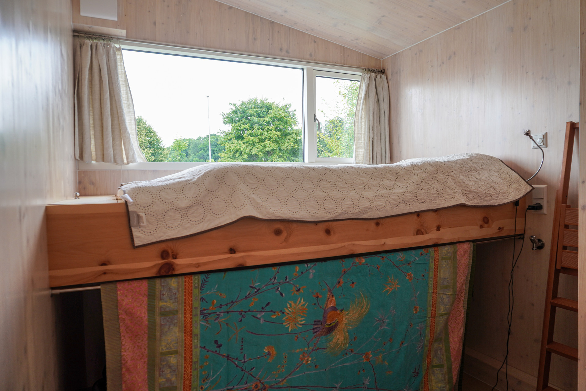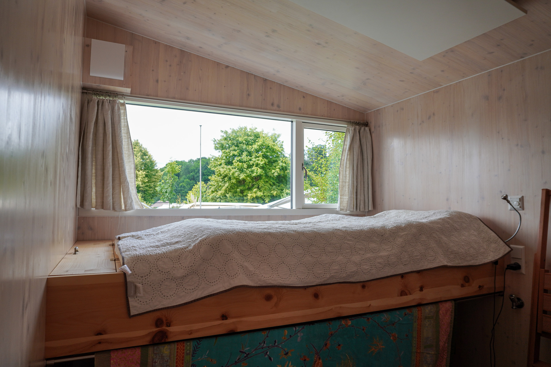 Schlafzimmer mit Zirbenholz-Bettkonstruktion