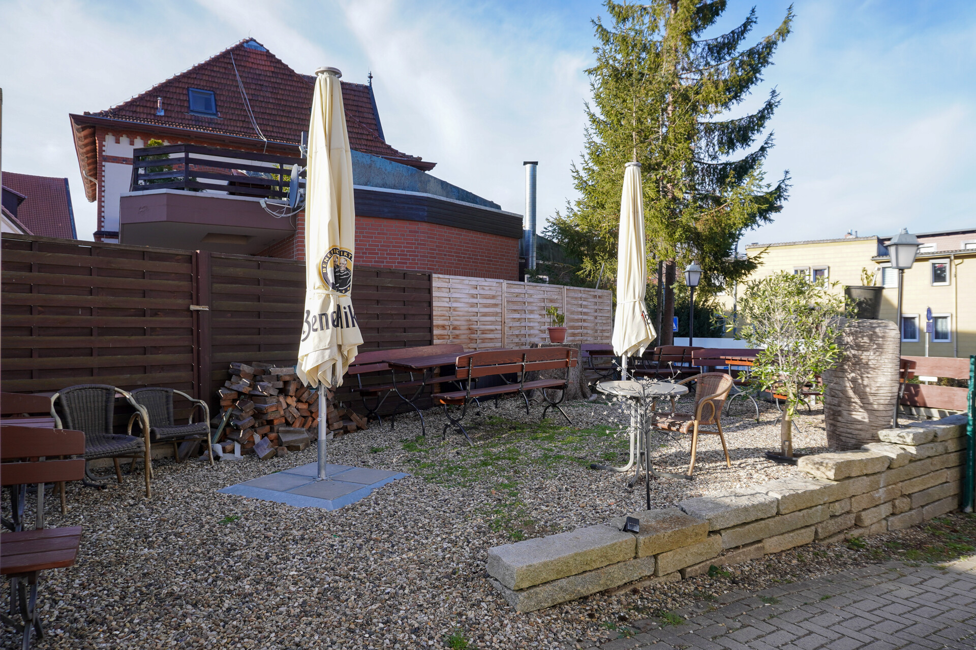 Im Erdgeschoss befindet sich die Gastronomie mit etwa achtzig Sitzplätzen, einem abgetrennten Raucherbereich, einer ausgestatteten Theke mit Bierzapfanlage und hochwertiger Kaffeemaschine sowie einer Küche mit Kühlhaus. Drei Biergärten erweitern den gastronomischen Betrieb im Außenbereich. Nebenräume und Lagerflächen sorgen für eine effiziente Organisation. Ein separates Gewerbe im Erdgeschoss kann eigenständig vermietet oder integriert werden. Die Autoaufbereitung als Mieter erzielt monatlich 450 Euro Kaltmiete. Das Objekt bietet eine seltene Kombination aus Gastronomie, Hotel und Entwicklungspotenzial.