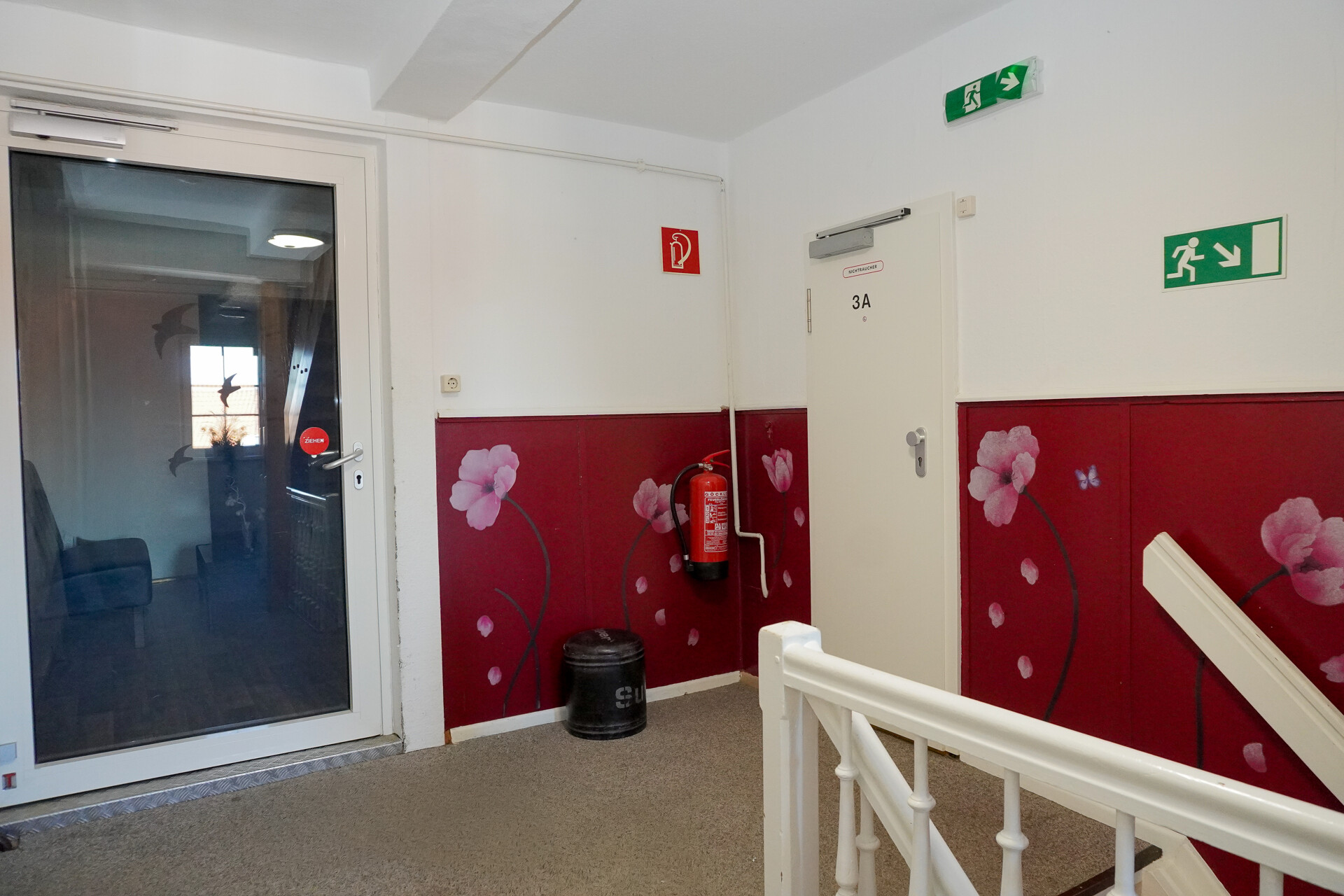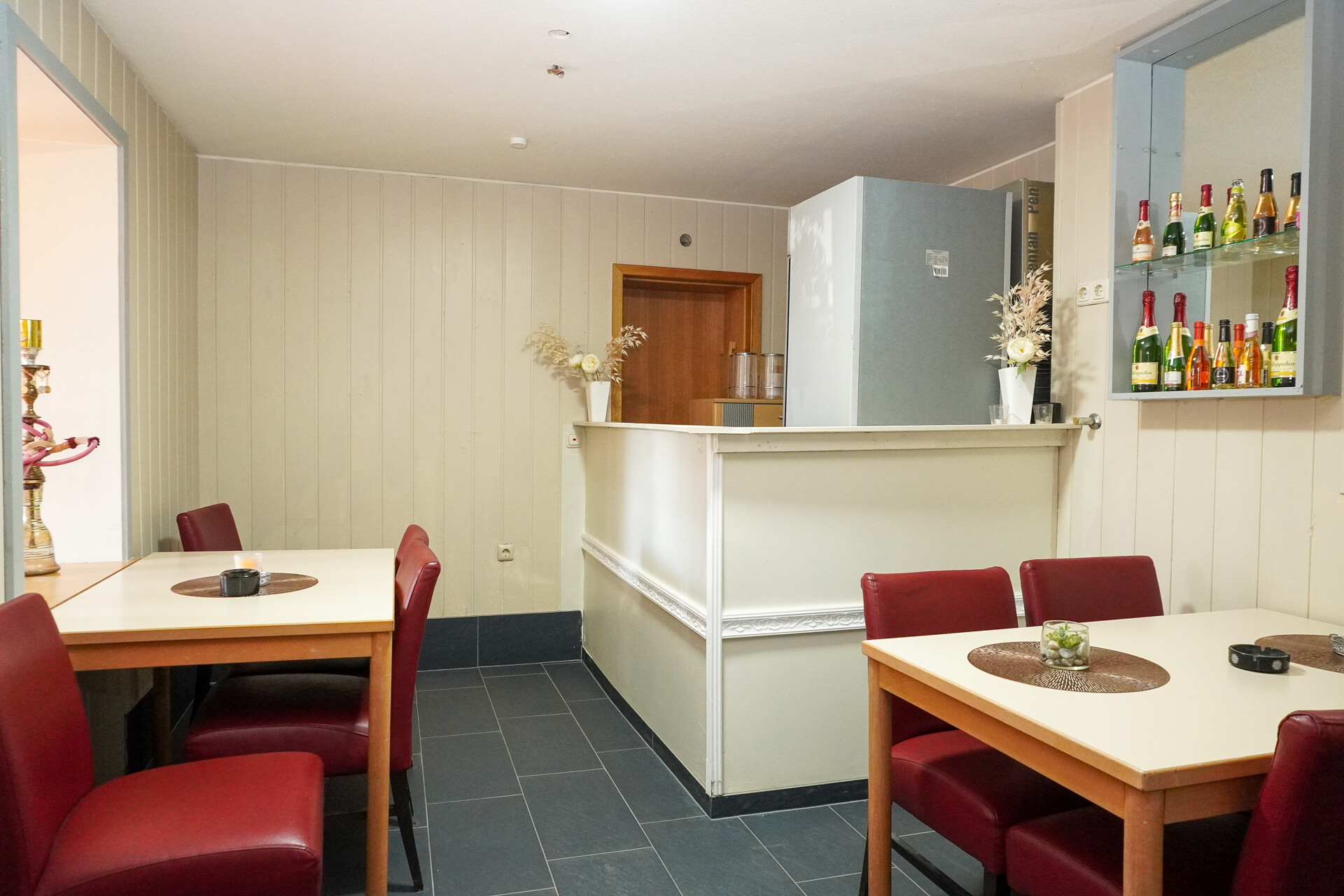 Die Gastronomie im Erdgeschoss wurde über Jahrzehnte gepflegt und sukzessive modernisiert. Die LED-Beleuchtung schafft eine warme Atmosphäre im Gastraum. Die große Theke ist vollständig ausgestattet und verfügt über eine hochwertige Kaffeemaschine und eine Bierzapfanlage. Die Küche erfüllt die Anforderungen eines gastronomischen Betriebs, einschließlich Kühlhaus, Spültechnik und Waschbecken. Nebenräume wie Büro, Lager, Flure und ein abgetrennter Raucherbereich sorgen für eine effiziente Betriebsorganisation. Das Büro im Eingangsbereich kann nachträglich mit einer Toilette ausgestattet werden, da sämtliche Anschlüsse vorhanden sind.