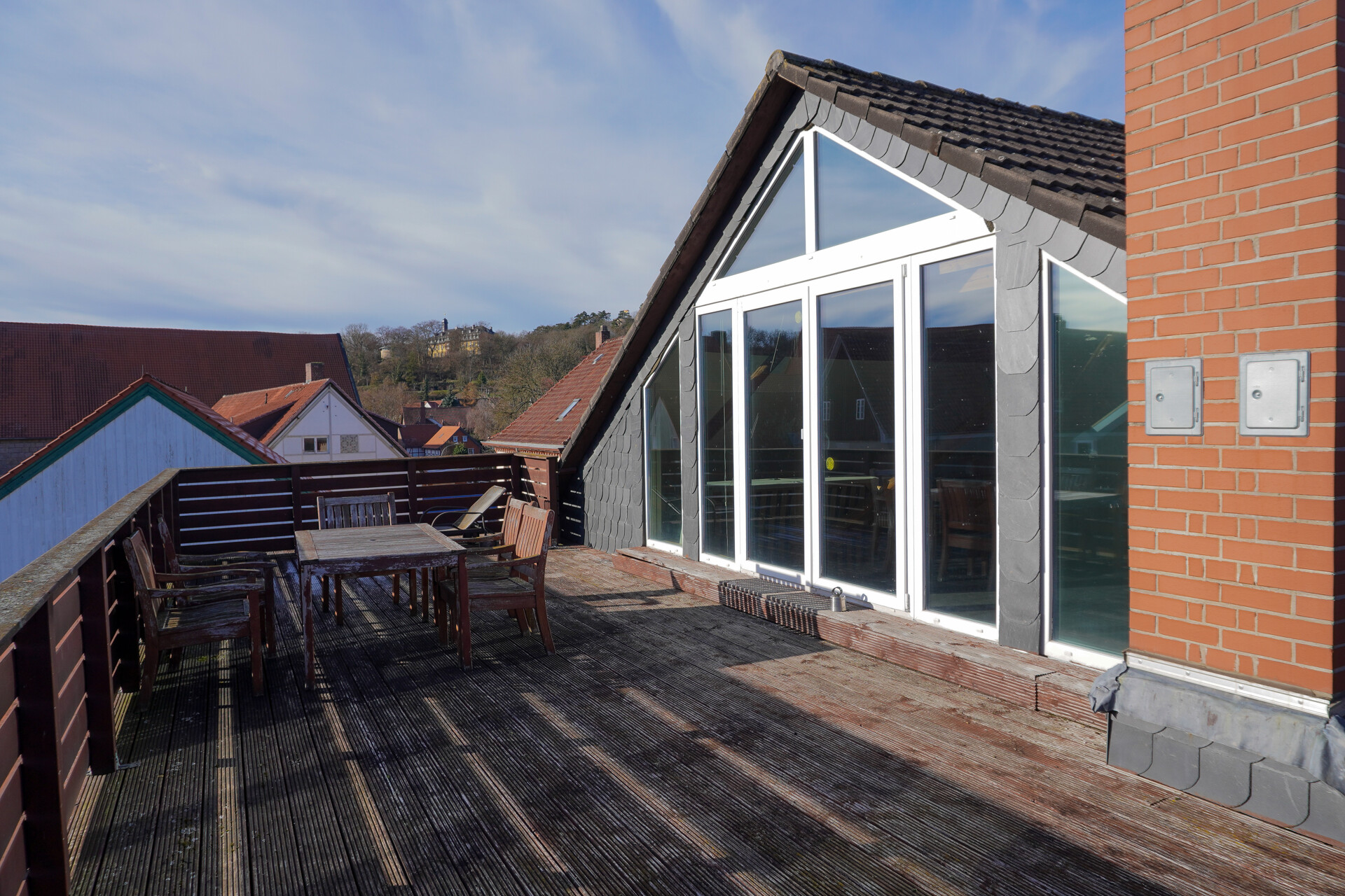 Die Struktur des Hauses macht eine sofortige Weiterführung des Hotelbetriebes möglich. Das renovierte Dachgeschossapartment mit Wohnzimmer, Dachterrasse, Schlafzimmer mit Ankleide, Kinderzimmer, Küche und Bad bietet zusätzlichen Wohnraum oder eine attraktive Vermietungsmöglichkeit. Vom Dach eröffnet sich ein weiter Blick über Liebenburg bis zum Brocken.